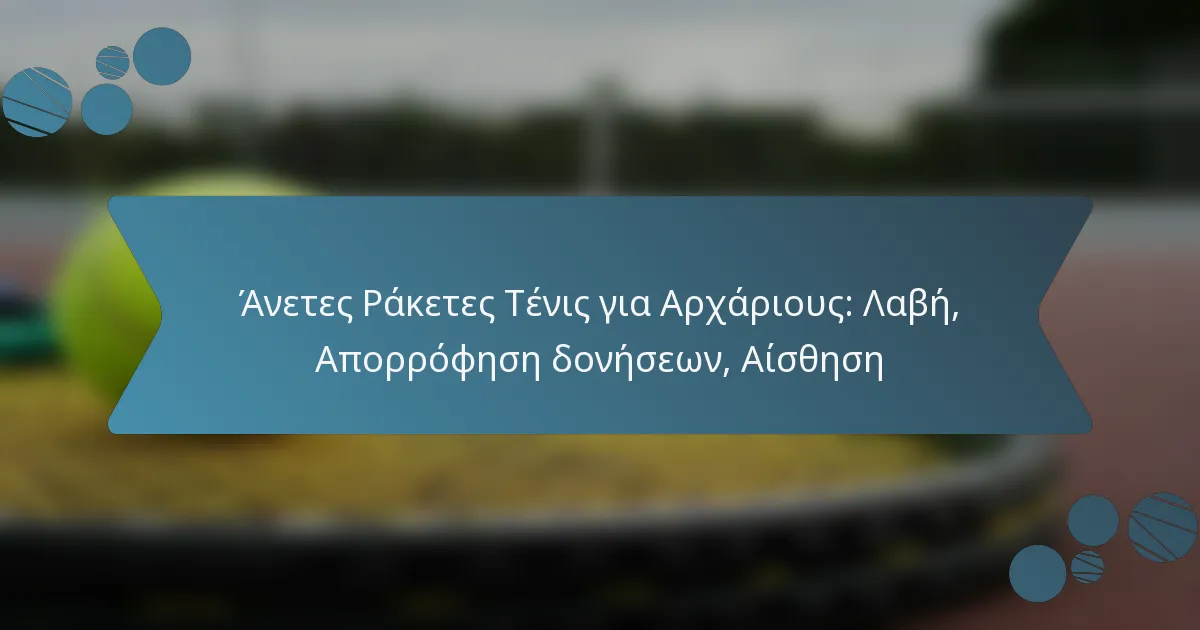 Οι άνετες ρακέτες τένις για αρχάριους έχουν σχεδιαστεί για να ενισχύουν την εμπειρία παιχνιδιού για τους νέους παίκτες, εστιάζοντας σε χαρακτηριστικά όπως το σωστό μέγεθος λαβής, την αποτελεσματική απορρόφηση κραδασμών και την ισορροπημένη αίσθηση. Αυτά τα στοιχεία συνεργάζονται για να ελαχιστοποιήσουν την ενόχληση και να βελτιώσουν τον έλεγχο, επιτρέποντας στους αρχάριους να επικεντρωθούν στην ανάπτυξη των δεξιοτήτων τους. Η κατανόηση της σημασίας της λαβής και της αίσθησης είναι ουσιώδης για την οικοδόμηση αυτοπεποίθησης στο γήπεδο.